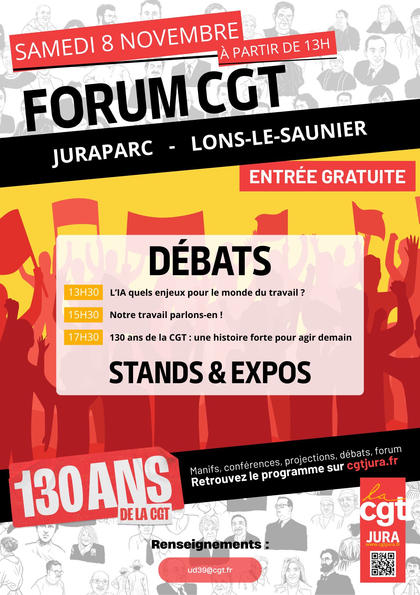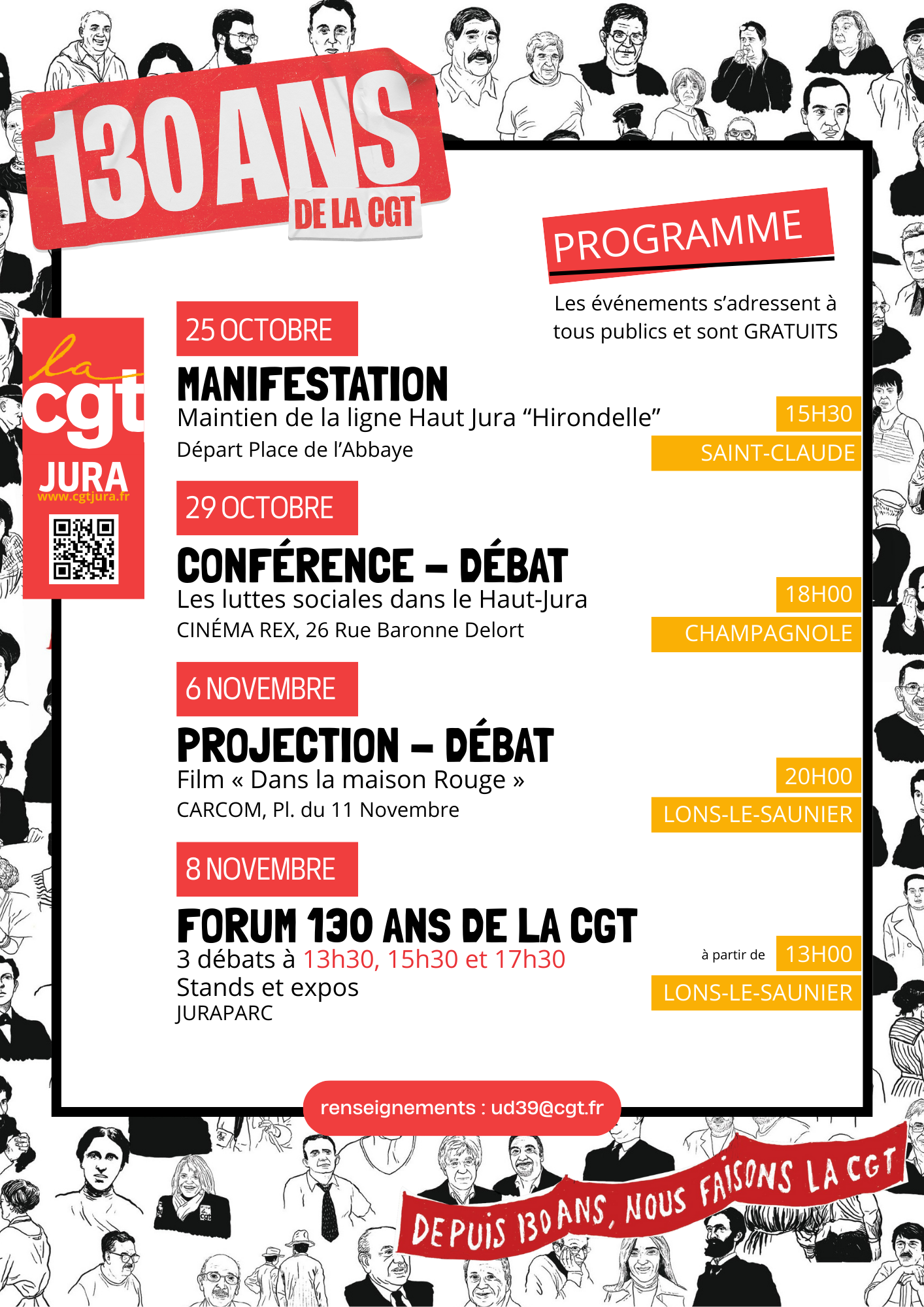 Du 25 octobre au 8 novembre, la CGT Jura vous propose des débats, conférences, projections et un grand forum de la CGT !